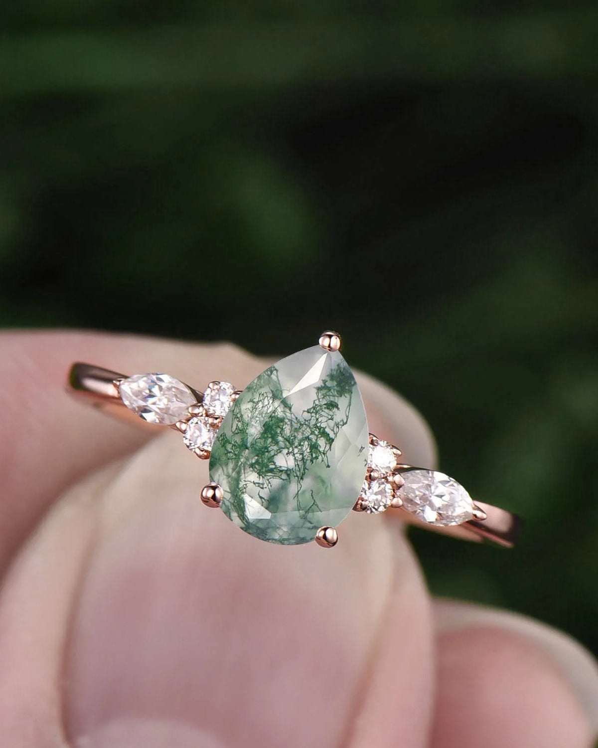 Explore our diverse collection of moss agate engagement rings, each offering a unique expression of love and individuality. From classic solitaire designs to modern halo settings, our rings cater to every taste and style, ensuring that every love story finds its perfect symbol.